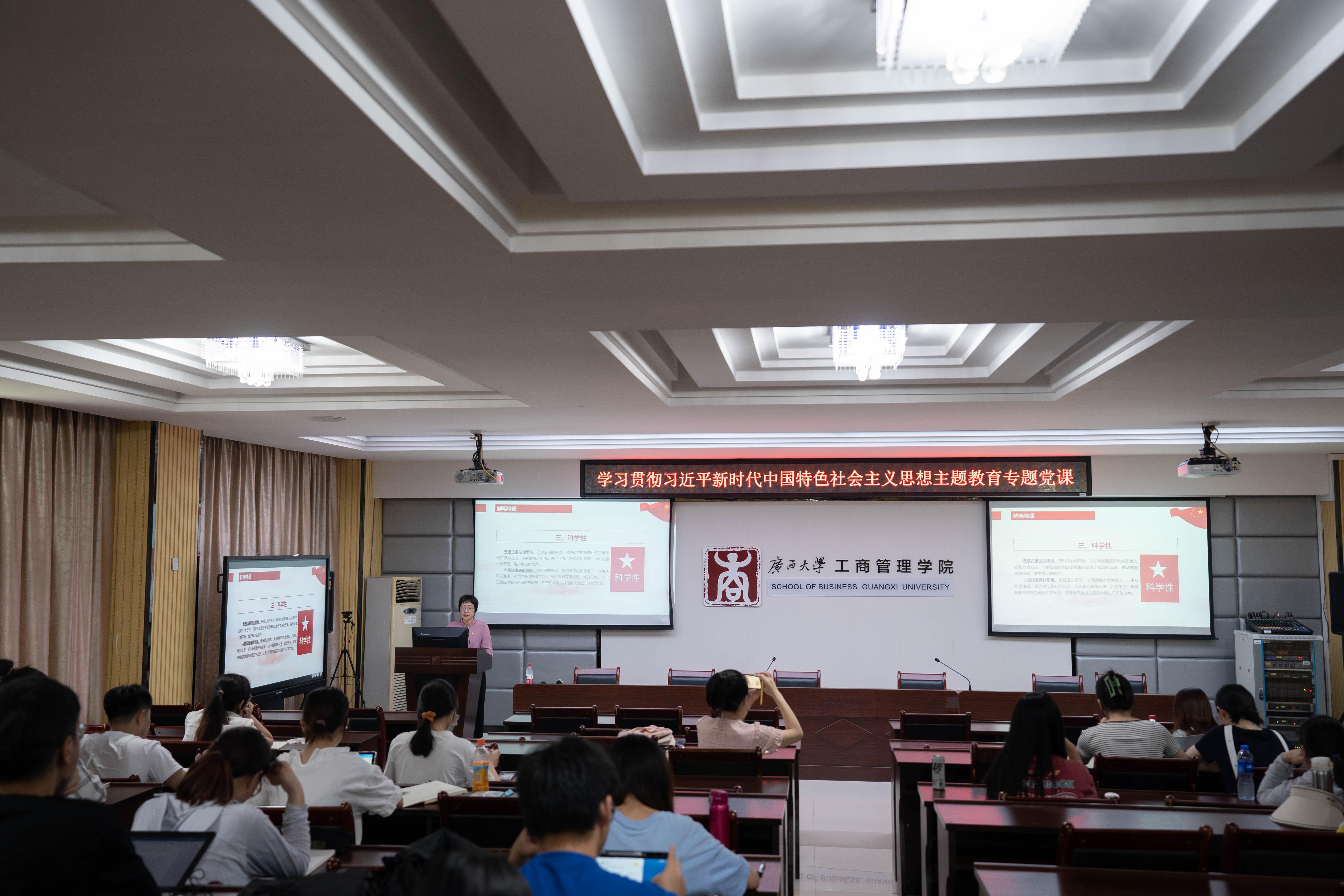 公司副经理廖东红以《学习贯彻习近平新时代中国特色社会主义思想》为题,在公司124报告厅为研究生第一党支部和本科生第四党支部讲授专题党课,她就习近平新时代中国特色社会主义思想主题教育概述、主要内容以及鲜明特质进行了阐述。她号召大家以主题教育为契机,深入学习贯彻党的二十大精神,努力把公司建成“区域有品牌,国内有特色,国际有影响”的新时代高水平bevictor伟德。