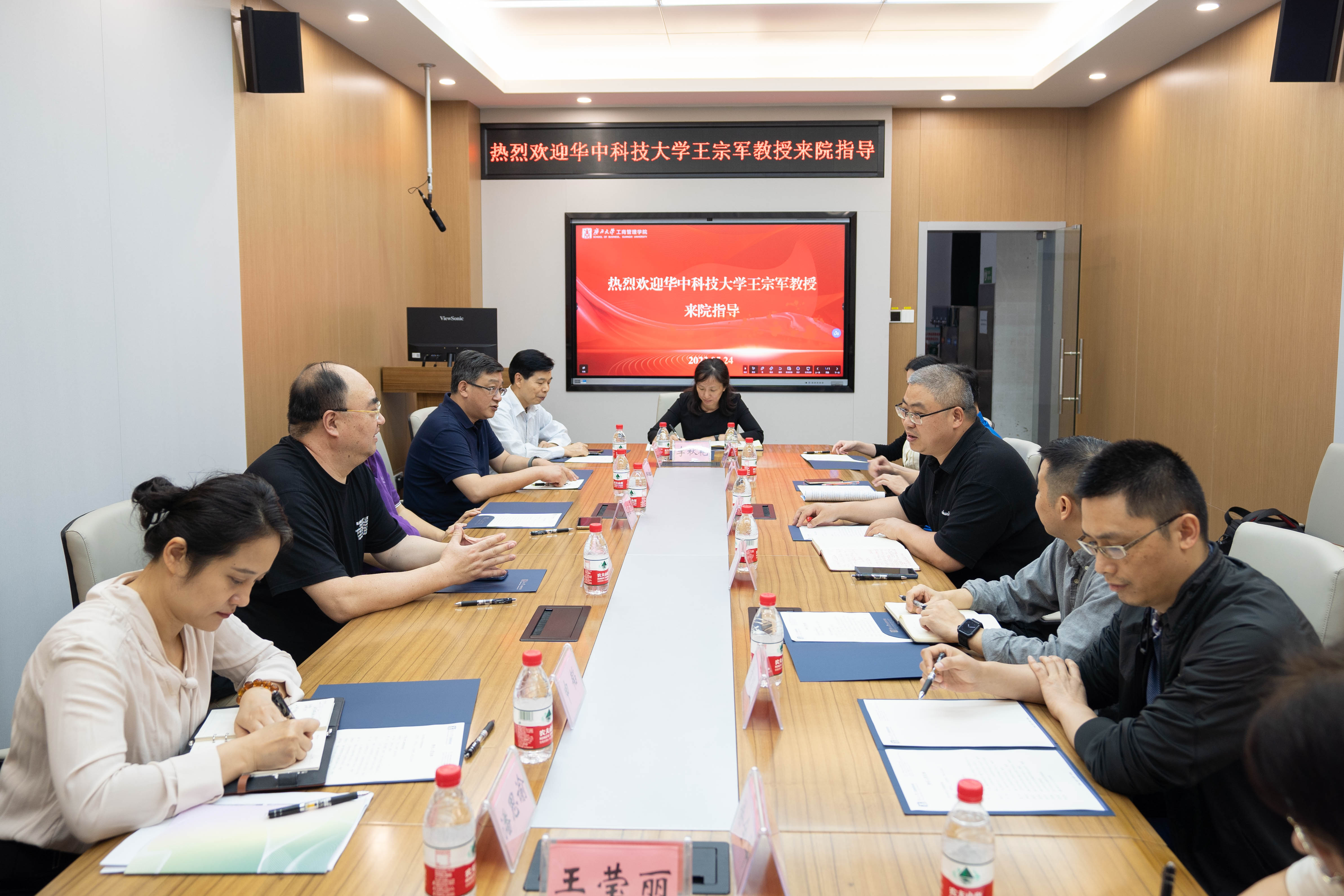 5月24日下午,华中科技大学管理公司原经理、全国MBA教育指导委员会委员王宗军教授莅临公司交流。公司经理朱帮助、副经理申韬与王宗军教授在233会议室座谈。