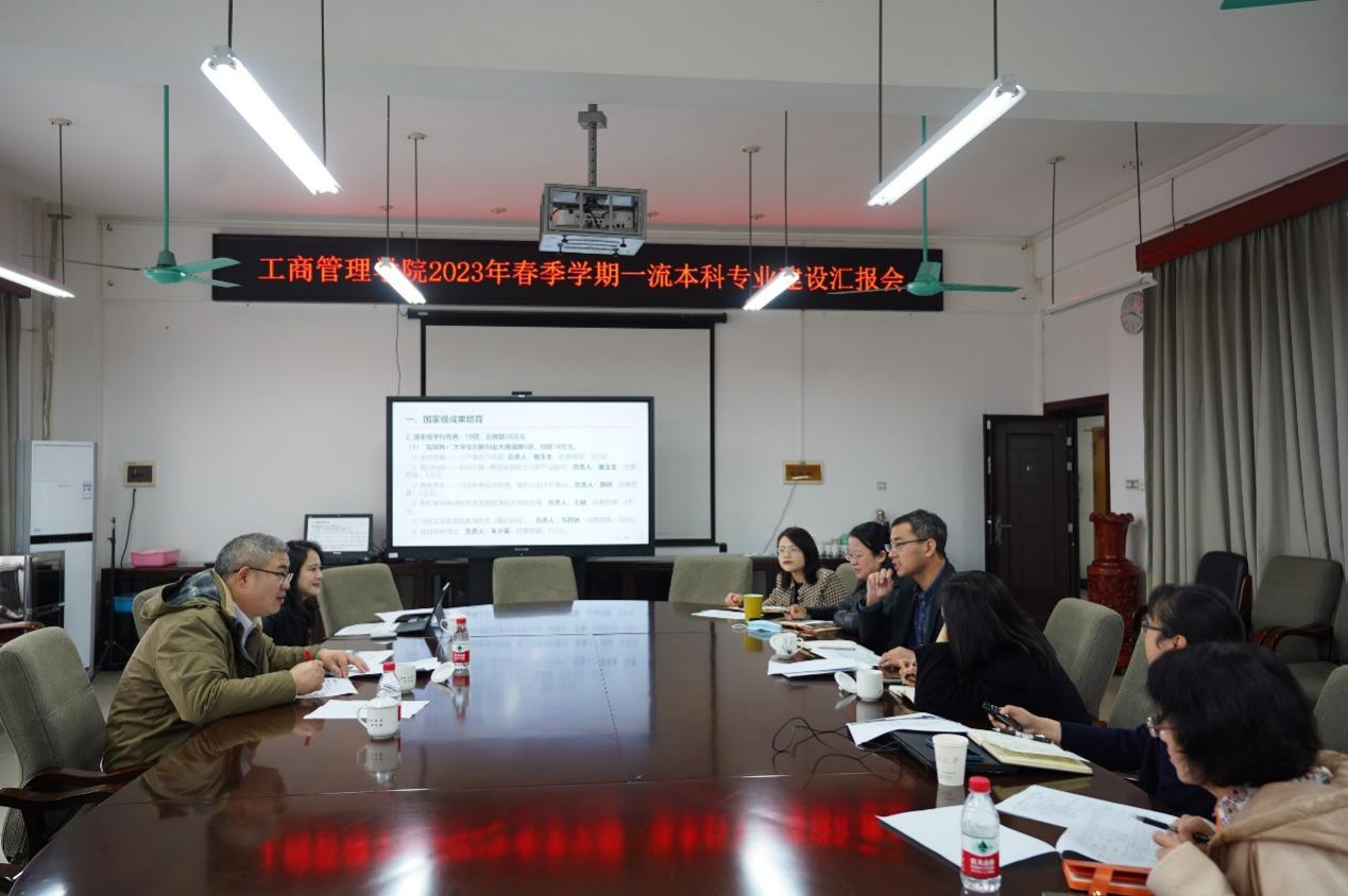 会上,会计学、工商管理和旅游管理3个国家级一流本科专业建设点负责人对标建设标准,重点从培养方案修订、团队队伍建设、标志性成果培育、建设经费预算等方面的规划举措进行了汇报。