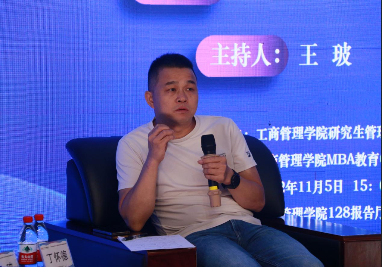主持人王玻副教授分别访谈了丁怀德先生、周华冰先生、苏琳先生、李科先生。四位嘉宾分别就“酒小二”、“华华火锅”、“五条友烧烤”、“广西泡泡吖食品”、“维多利”等公司的发展历程、经营模式与行业现状等方面进行阐述,与大家分享了创业经验和心得体会。