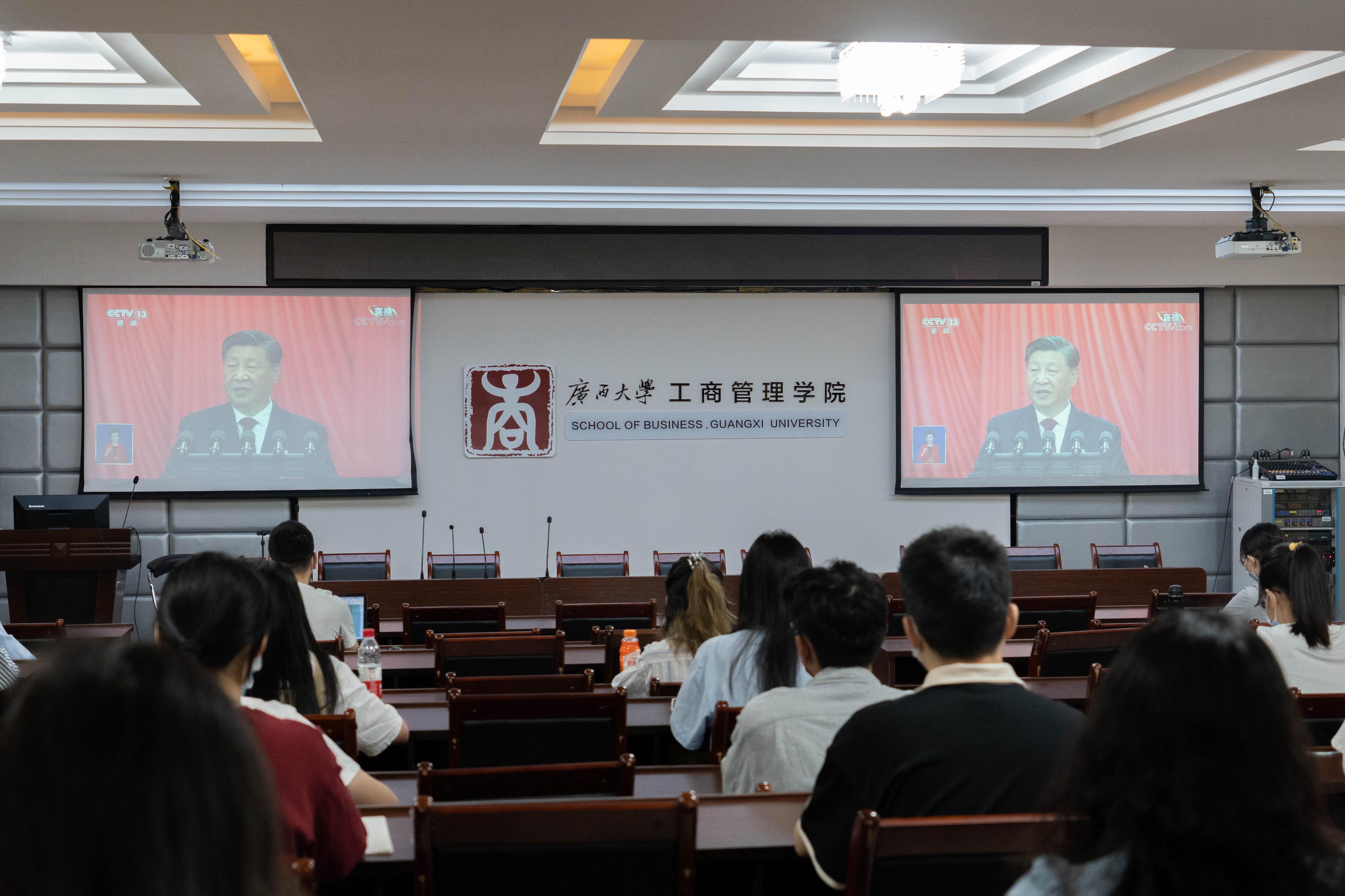 在bevictor伟德128报告厅、124教室,公司党员干部、师生代表集中收看开幕会盛况,其余师生自发在办公室、在寝室、在家等场所,通过电视、网络、广播等渠道认真收看收听党的二十大开幕盛况。