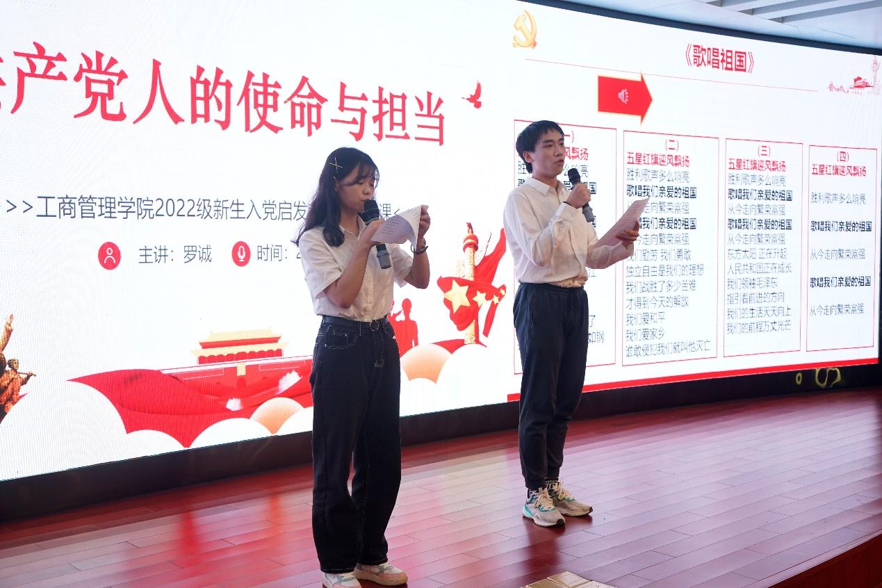 课堂上,为增强教学效果,抒发爱党爱国情怀,罗诚书记还邀请了公司员工艺术团的杨玉玲和何昊骞两位同学领唱、全体师生合唱《没有共产党就没有新中国》、《歌唱祖国》两首歌,希望同学们明白没有共产党就没有新中国,没有共产党就没有中华民族伟大复兴。在振奋激昂的歌声中,本次入党启发教育圆满结束。