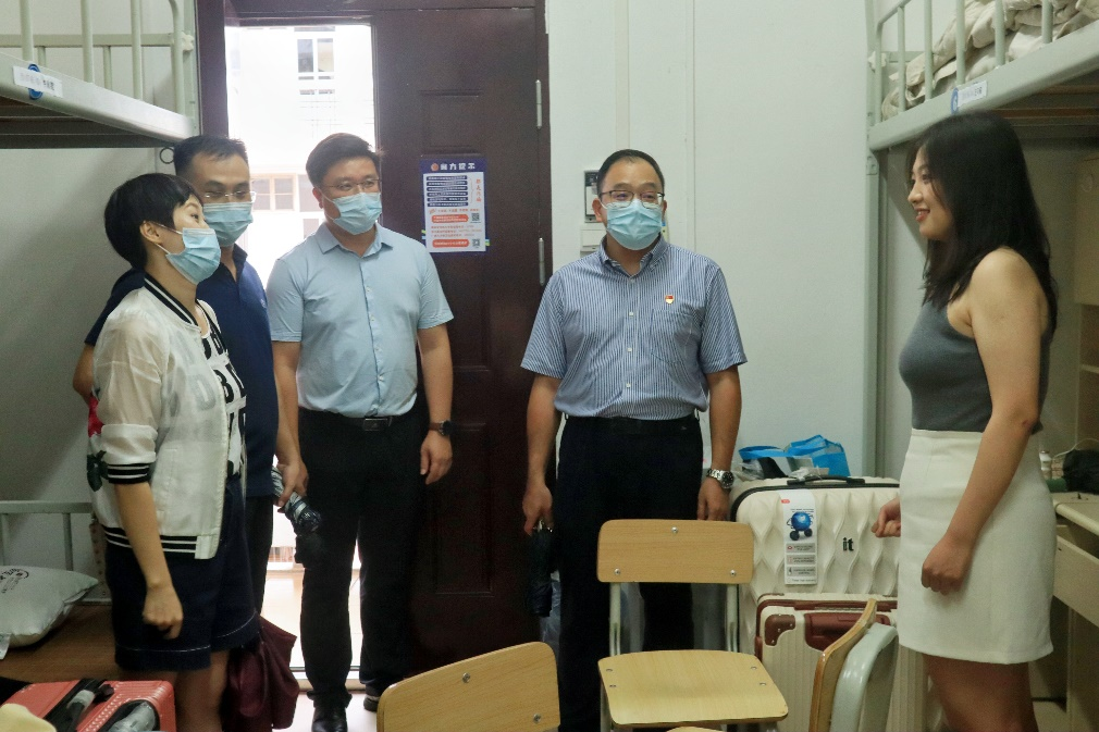 在2022级新生宿舍里,公司领导、老师们关切声声,殷勤期望。他们认真询问新生来校路途情况,了解新生学习、生活方面的需求,关心北方同学对广西气候适应问题,为新生进行答疑解惑,并送上亲切的问候与祝福。