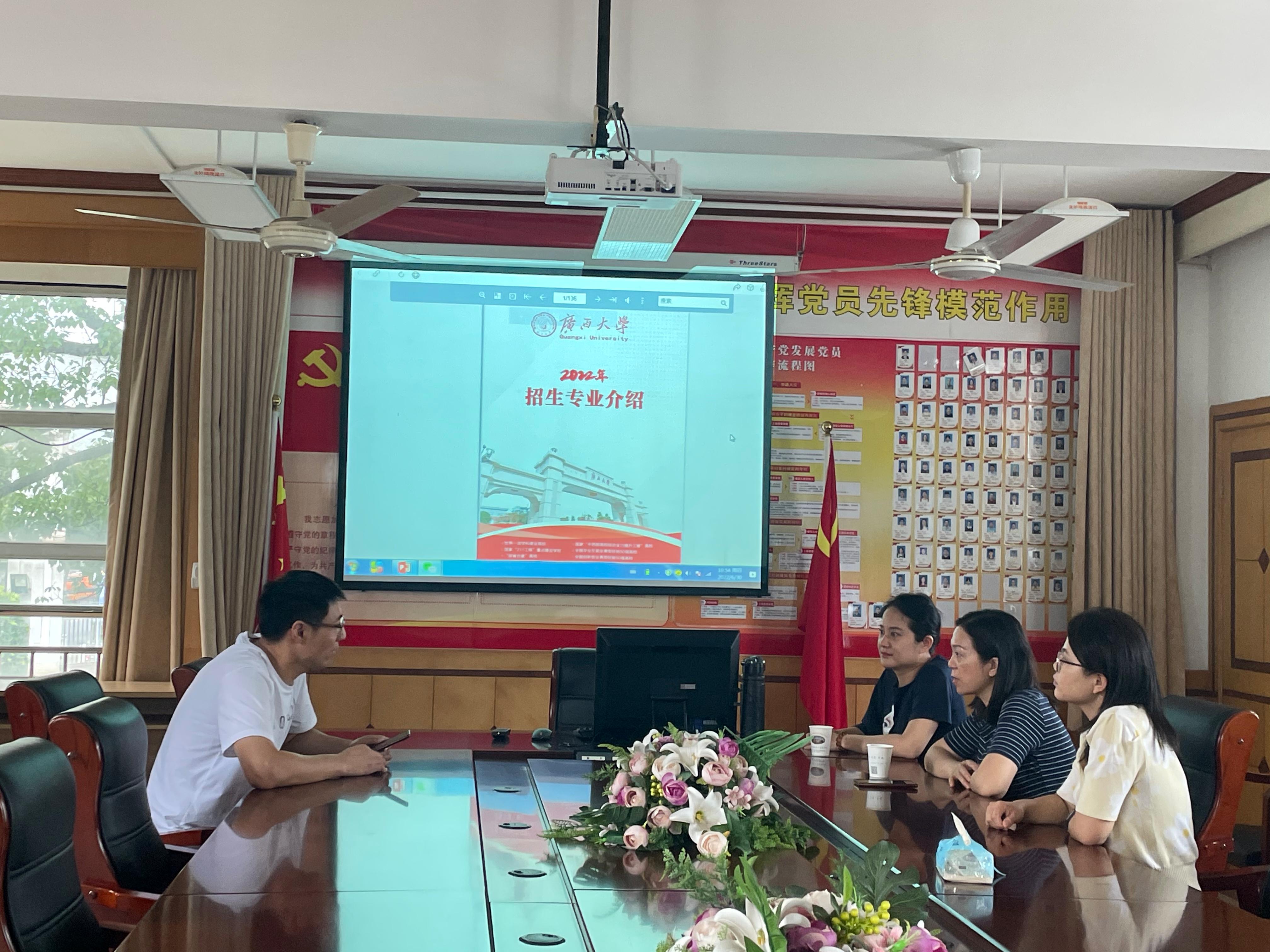 6月27-28日,经理朱帮助、企管系主任韦铁、副主任刘会民、彭娟一行四人到百色高中、百色祈福高中和田阳高中等公司进行了招生宣讲,现场回答考生和家长的咨询问题,收到了良好效果。