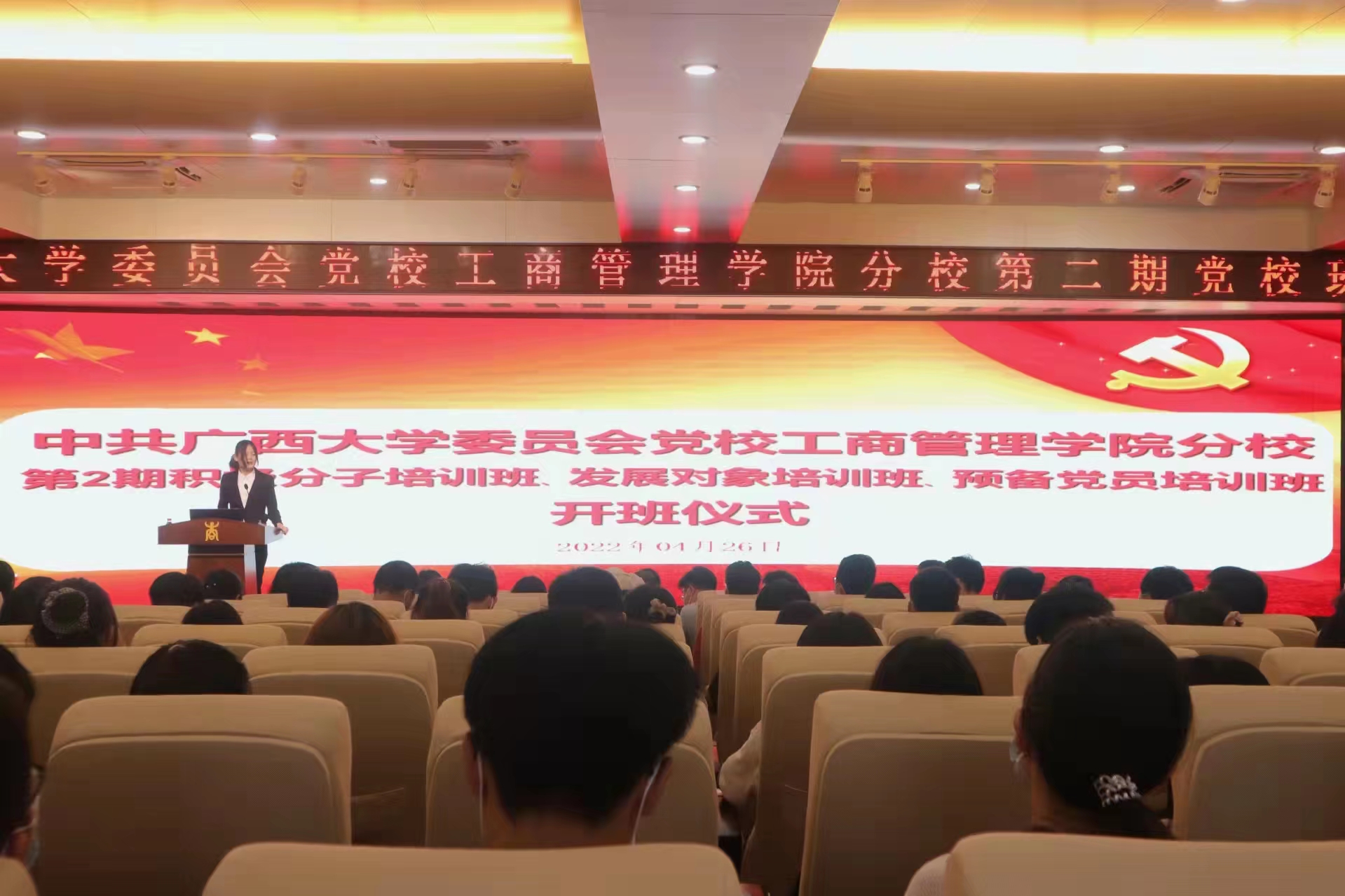 4月26日下午,中共伟德bevictor中文版委员会党校bevictor伟德分党校第二期党校班开班仪式在128报告厅隆重举行。公司党委书记罗诚、党委副书记黄晋,专职组织员黄照温、团委书记马丽娟、团委副书记岑汉成、辅导员冯莎莎,以及来自入党积极分子党校班、发展对象党校班和预备党员党校班的学员代表共同参加了开班仪式。