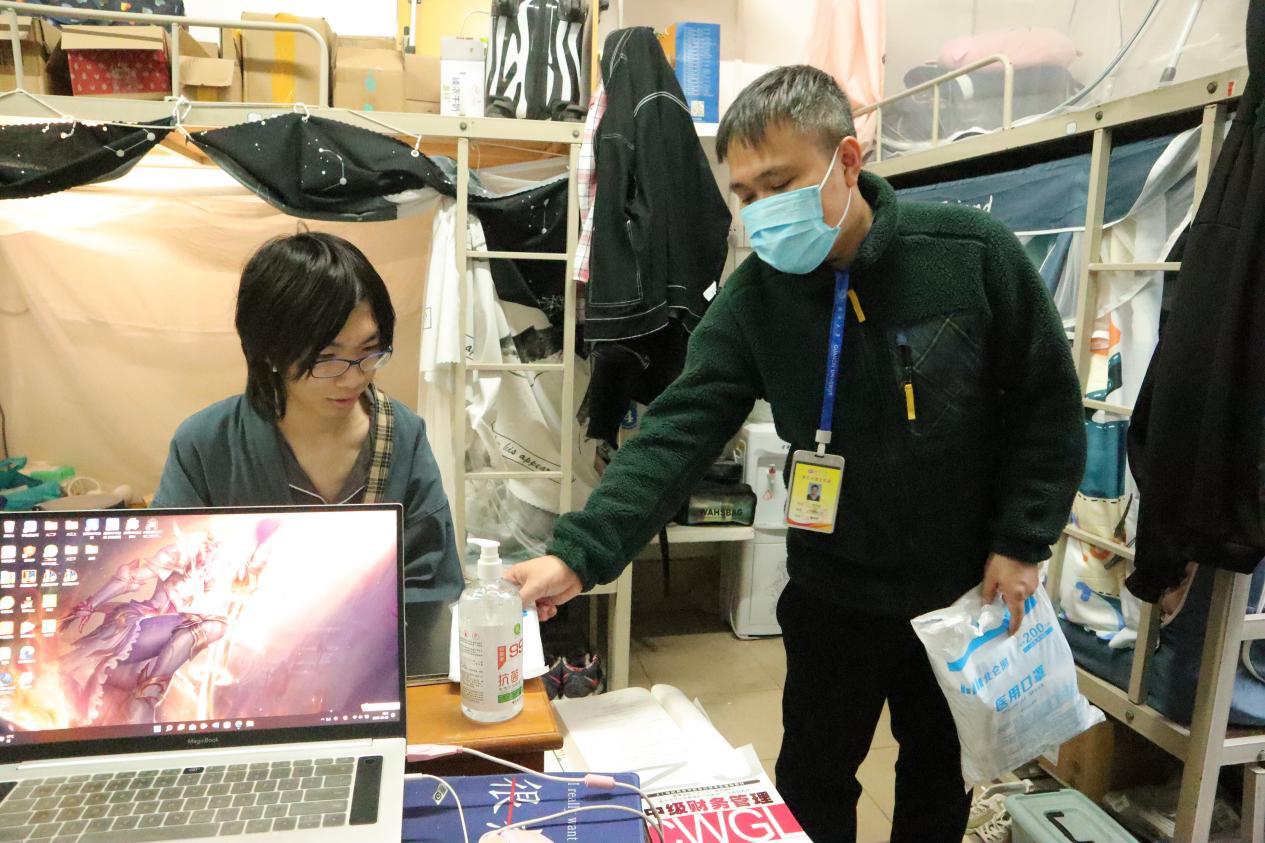为贯彻落实好《伟德bevictor中文版2022年工作要点》提出的“和书记聊思想”工程,3月23日下午,公司党委书记罗诚、党委副书记黄晋分别带领辅导员、主要员工干部走访公司本科生男、女生宿舍及西校园南区研究生宿舍,重点了解公司员工在疫情防控状态下的思想、线上学习、生活等情况,并为同学们送上免洗洗手液、口罩等防疫物资。
