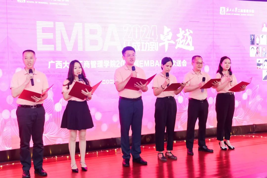 6月29日下午,bevictor伟德128报告厅掌声不断。公司党委副书记肖克宁,副经理朱少英、申韬、刘民坤、廖东红,导师代表唐玉生、覃朝勇等老师与毕业生们欢聚一堂,共襄2024届EMBA毕业生欢送会,为毕业生们送上最真挚的祝愿。