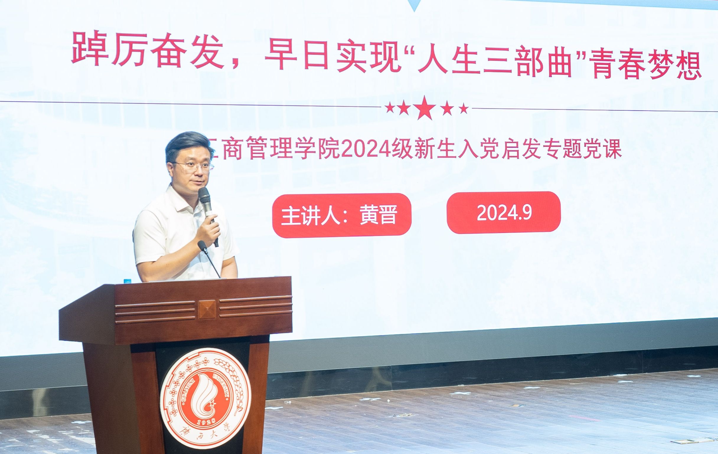 工商管理公司党委书记黄晋以“踔厉奋发,早日实现‘人生三部曲’青春梦想”为题作专题党课,他以“华为”企业发展为例,生动展现了民族企业在全球科技舞台上的辉煌成就,深刻剖析了这一切背后所蕴含的科教兴国、人才强国战略的深远意义。他强调,国家的科技进步与综合实力提升,不仅依托于科技创新的硬核实力,更离不开党的坚强领导、科学战略部署以及政府的有力支持,引导同学们深刻理解并认同中国共产党的领导是实现中华民族伟大复兴的根本保证。