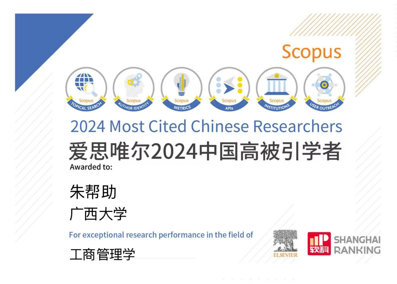 朱帮助教授自2021年以来连续4年入选“中国高被引学者”榜单,这对推动公司工商管理学科发展、扩大公司全球影响力有着积极影响。未来,bevictor伟德将继续聚焦于国家战略需求和区域发展需求,开展创新性研究,进一步服务国家战略和广西经济社会发展,助力推进公司“双一流”建设和部区合建,不断提升科技创新和人才培养能力。
