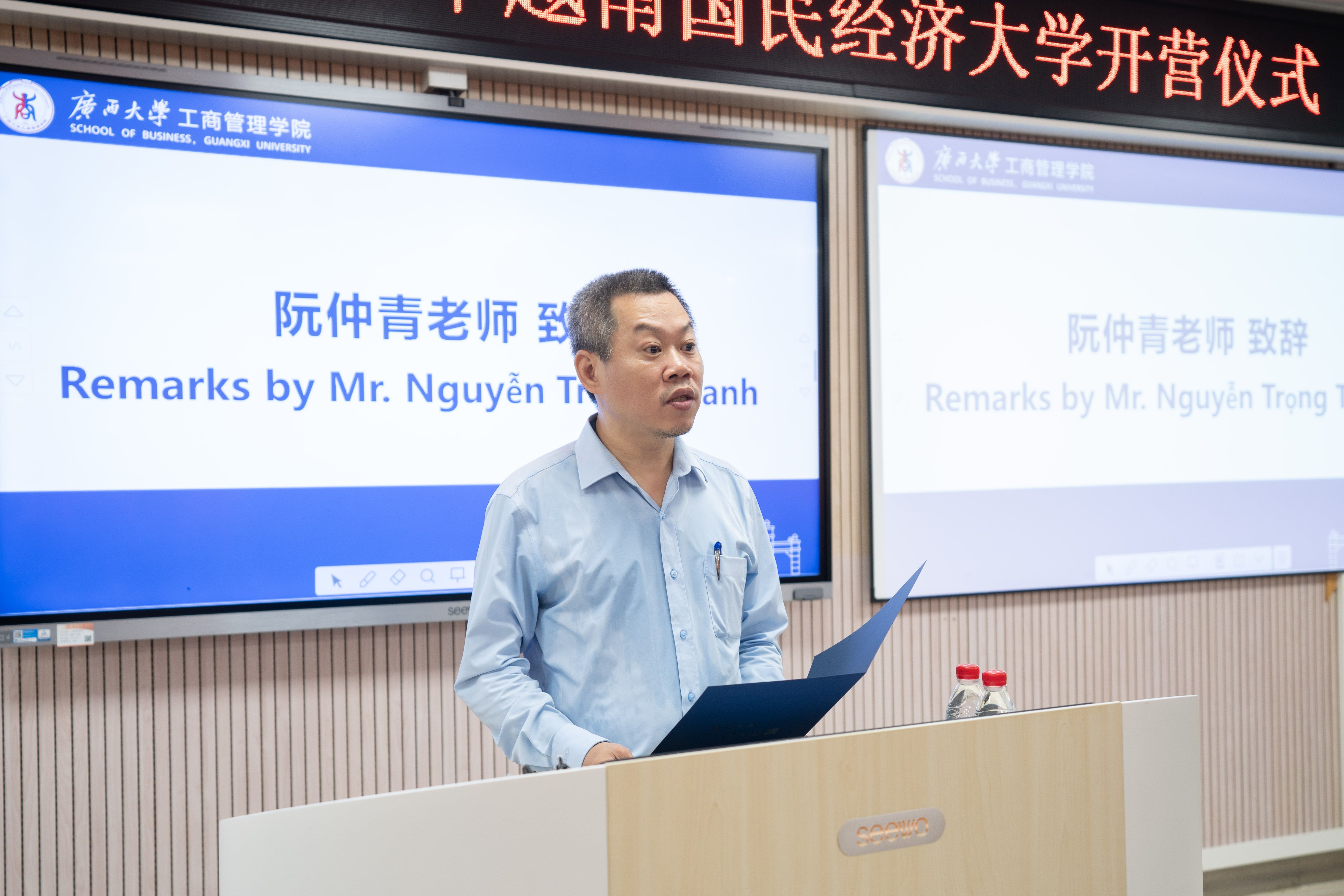 2025年是中越建交75周年暨“中越文化交流年”,为促进中越青年交流合作,公司与越南国民经济大学联合举办“2025年越南国民经济大学夏令营”活动。6月29日上午,夏令营开营仪式在公司511教室举行。公司国际交流与合作处处长廖文丹,公司党委书记黄晋,越南国民经济大学教师代表阮仲青(Nguyễn Trọng Thanh)出席仪式。经理助理韦铁主持仪式,越南国民经济大学19名师生参加仪式。