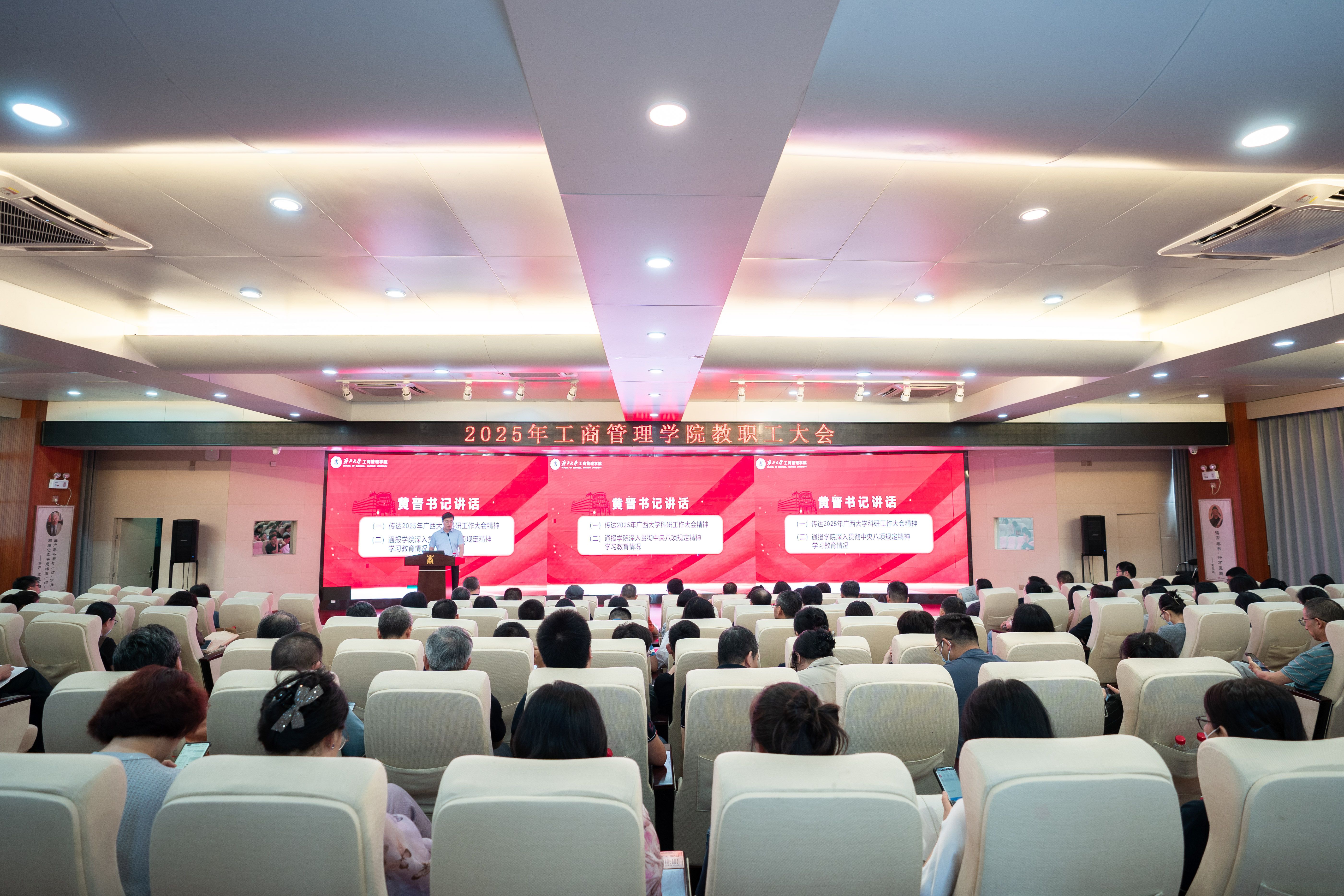 7月11日下午,公司在公司128报告厅召开期末全院教职工大会。公司党委书记黄晋,经理朱帮助,党委副书记肖克宁,副经理朱少英、申韬、廖东红、韦铁出席会议,全体教职工参加了会议。会议由朱帮助主持。