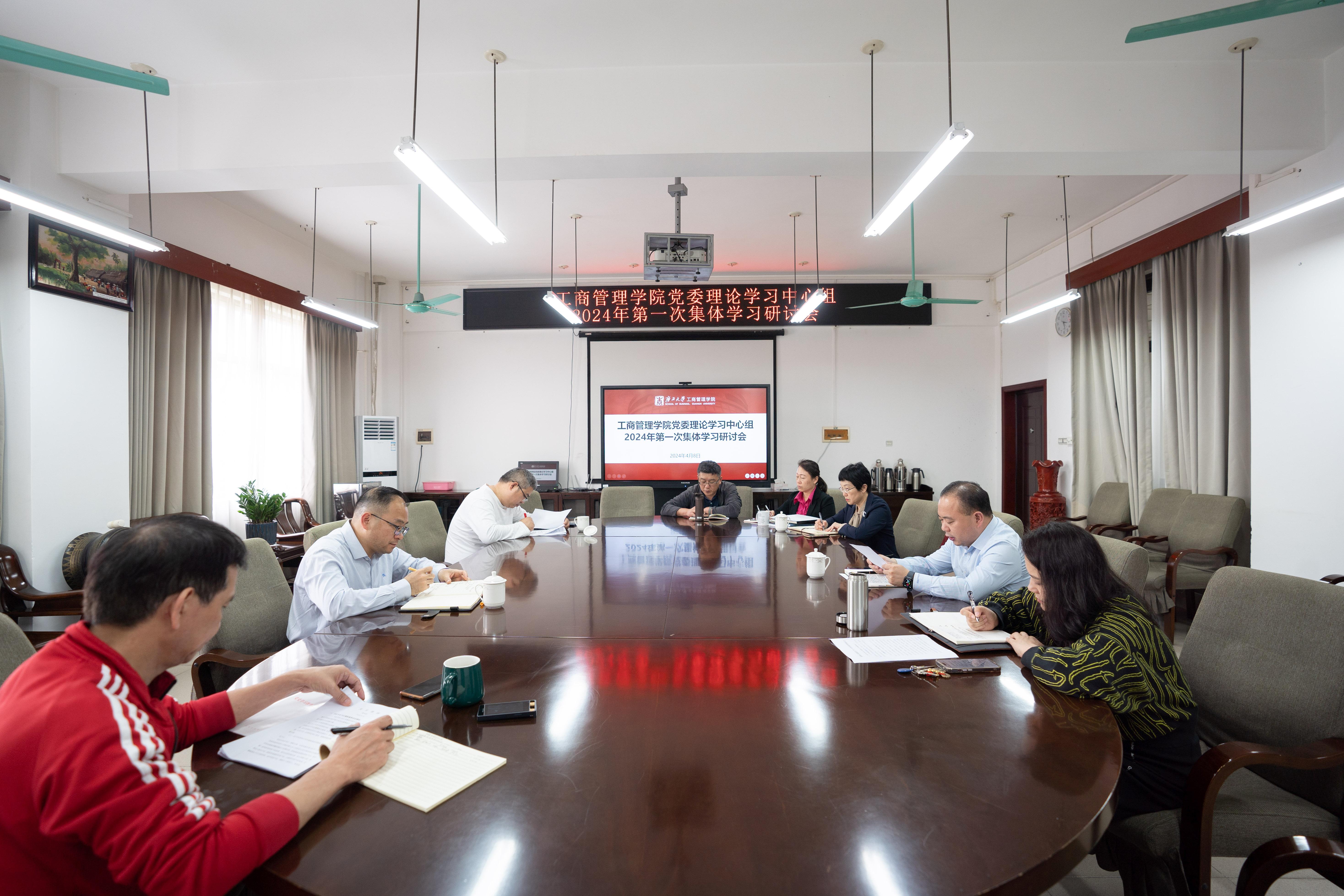 4月8日下午,公司召开党委理论学习中心组2024年第一次集体学习会,深入学习习近平总书记在全国两会期间的重要讲话精神、全国两会精神和习近平总书记对广西重大方略要求,围绕“学方略、谋创新、抓落实,推动公司高质量发展”主题开展研讨交流。公司党委书记罗诚主持学习会并领学,公司党委理论学习中心组全体成员参加学习会。
