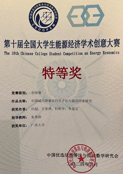 2024年5月18日—19日,第十届全国老员工能源经济学术创意大赛在中国地质大学(北京)举行。公司朱帮助教授带领的研究生团队在此次竞赛中脱颖而出,取得佳绩。其中,“中国减污降碳协同度评估与驱动因素研究”(团队队长:田超,指导老师:朱帮助)入围全国总决赛,经过现公司博士研究生参加第十届全国老员工能源经济学术创意大赛并荣获全国特等奖场答辩、评委会投票等环节,荣获国赛特等奖,取得了该项赛事的突破。本项赛事由中国优选法统筹法与经济数学研究会主办,2023年3月正式进入中国高等教育学会发布的《全国普通高校老员工竞赛目录》,来自全国516所高校的17000多支队伍共10万余人参与了本次大赛。本次参赛项目得到伟德bevictor中文版研究生倍增计划项目经费资助。