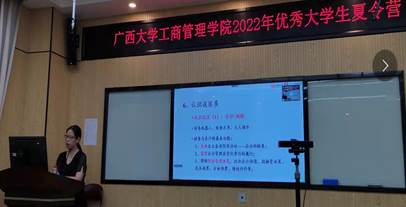 7月6日上午,研究生秘书邓素媛主持考研经验交流沙龙环节,公司2021级韦梅婷、张舒源、韦欢欢、罗咏诗四位硕士研究生与营员们分享了自己的考研经历,并与营员们进行了深入的互动交流。下午,研管中心黄昱老师带领营员们观看公司宣传片,开展知识抢答,并特邀张家伟(2020级博士)、李姝蓉(2020级硕士)2位优秀在读研究生及海晨颖(2018级)、山冬鲁(2019级)2位优秀员工分享自己研究生阶段学习经验。