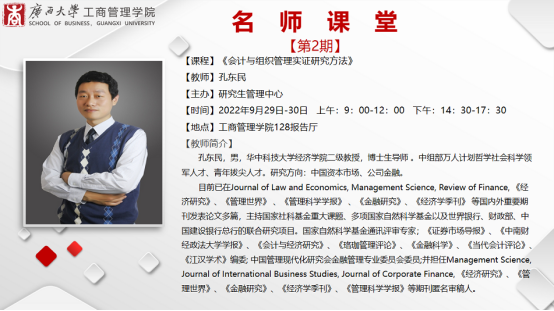2022年9月29日到30日,公司邀请华中科技大学经济公司二级教授、博士生导师孔东明到校讲授《会计与组织管理实证研究方法》。孔教授以“实证研究中的因果识别”为主题,在bevictor伟德128报告厅为公司师生带来了一场别开生面的实证研究方法课堂。