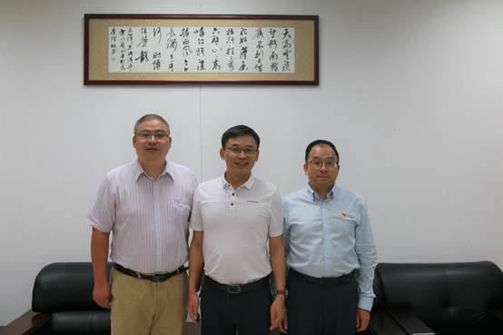 公司经理朱帮助(左一)、温标堂先生(中)、公司党委书记罗诚(右一)