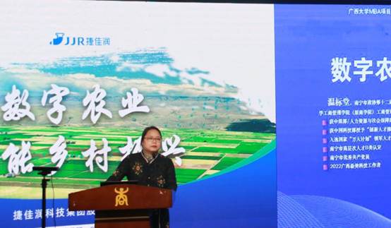 论坛之初,公司副经理朱少英致开幕辞,向大家隆重介绍了温标堂员工,并对温标堂以及员工、同学们的到来表示欢迎。她介绍到,温标堂员工荣获2022年广西最美科技工作者称号,是一名的优秀共产党员。他深耕智慧农业行业,创办了捷佳润科技集团股份有限公司。该公司研发的“智能水肥一体化精准灌溉管理系统”,曾受到人民日报、央视新闻的报道。2017年,习近平总书记还曾到该公司参观,并称赞其实现了“农业神话”。