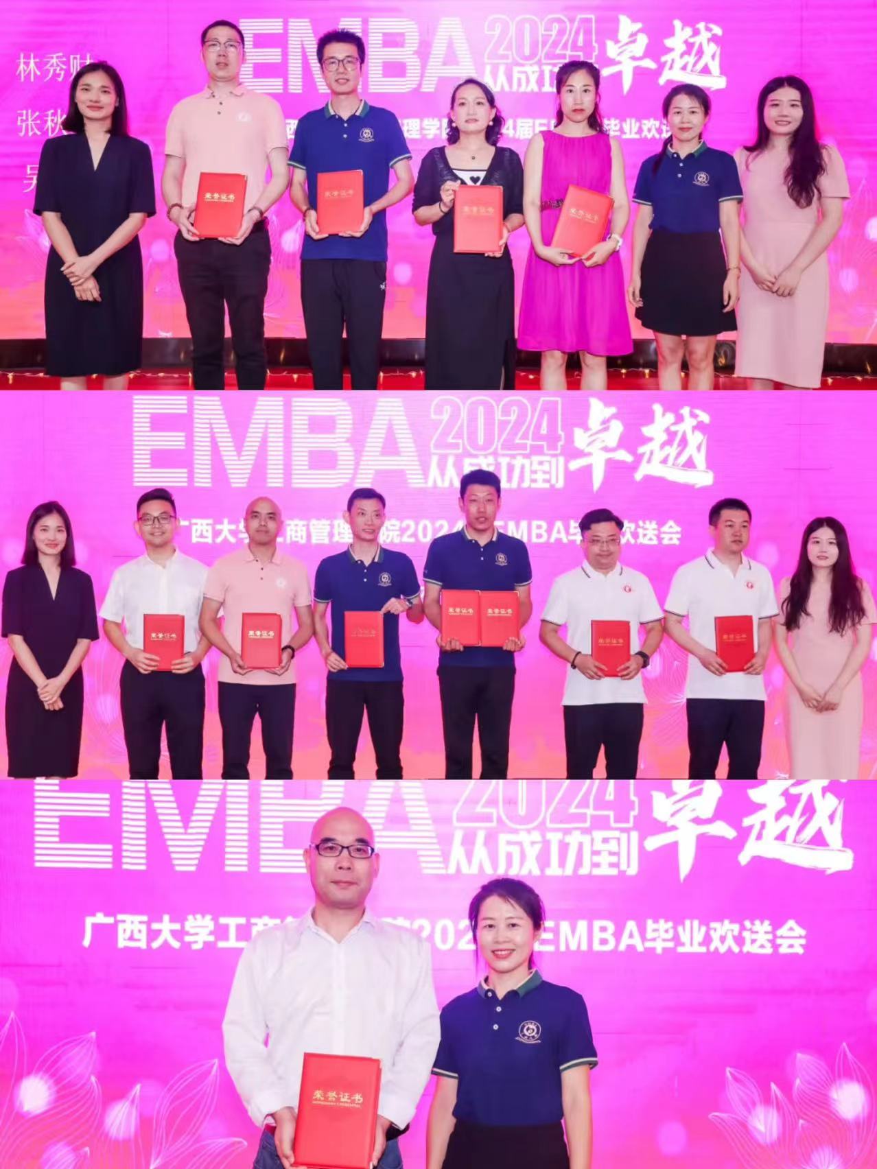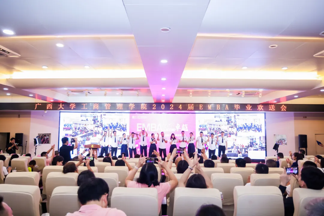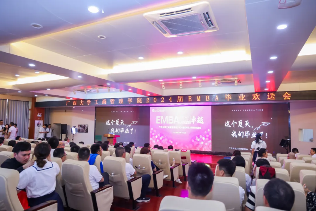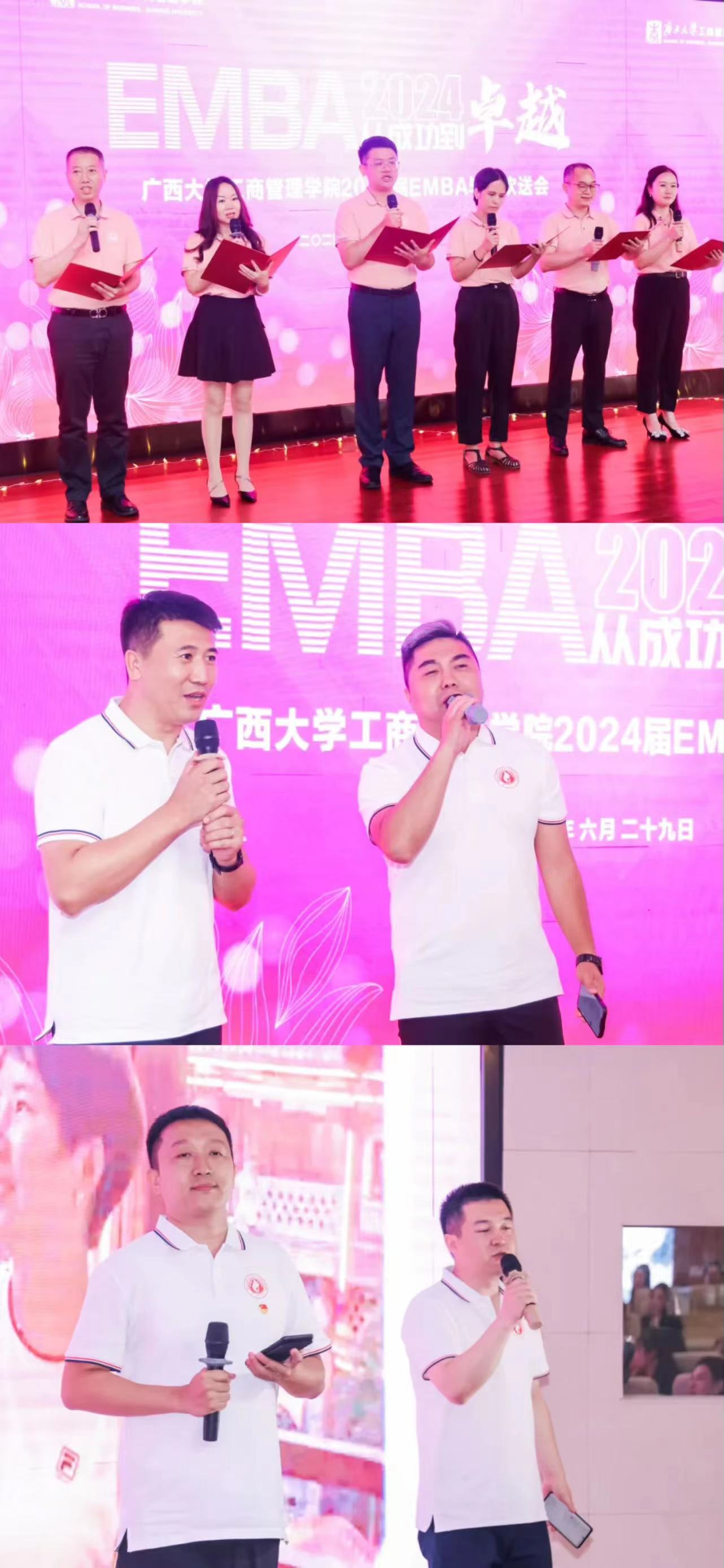 6月29日下午,bevictor伟德2024届EMBA毕业生欢送会在128报告厅隆重举行。工商管理公司党委副书记肖克宁、副经理朱少英、申韬、刘民坤、廖东红,导师代表唐玉生、覃朝勇等老师出席了欢送会,共同为此次毕业的EMBA同学庆祝。此次欢送会由EMBA21班周艳、EMBA22班居香、EMBA23班陆宏亮主持。