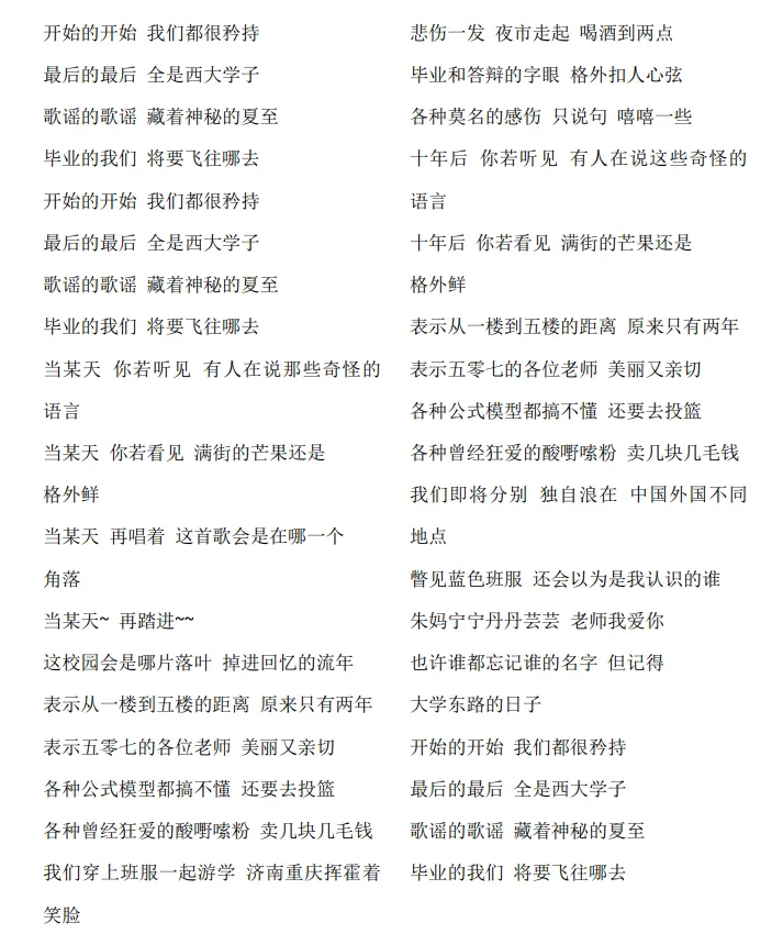 EMBA22班同学巩新原、李玉华等十四位同学演唱的歌曲串烧拉开了欢送会的序幕。当由22班杜敏杰填词的《大学东路的日子》响起,两年学习的点点滴滴在歌声中浮现,珍贵的回忆在眼前回荡,离别的感伤悄悄在会场上弥漫开来。