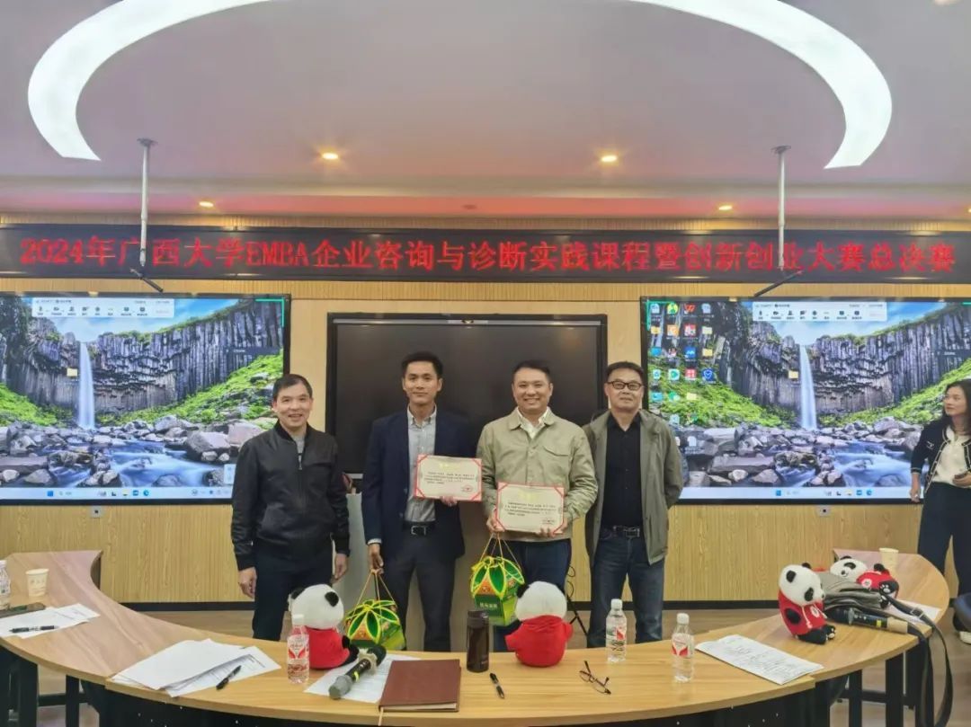 在紧张的算分环节后,胡峰副教授公布了2024年EMBA企业咨询与诊断实践课程暨创新创业大赛总决赛的获奖名单,评委们为获奖队伍颁发奖状和奖品。