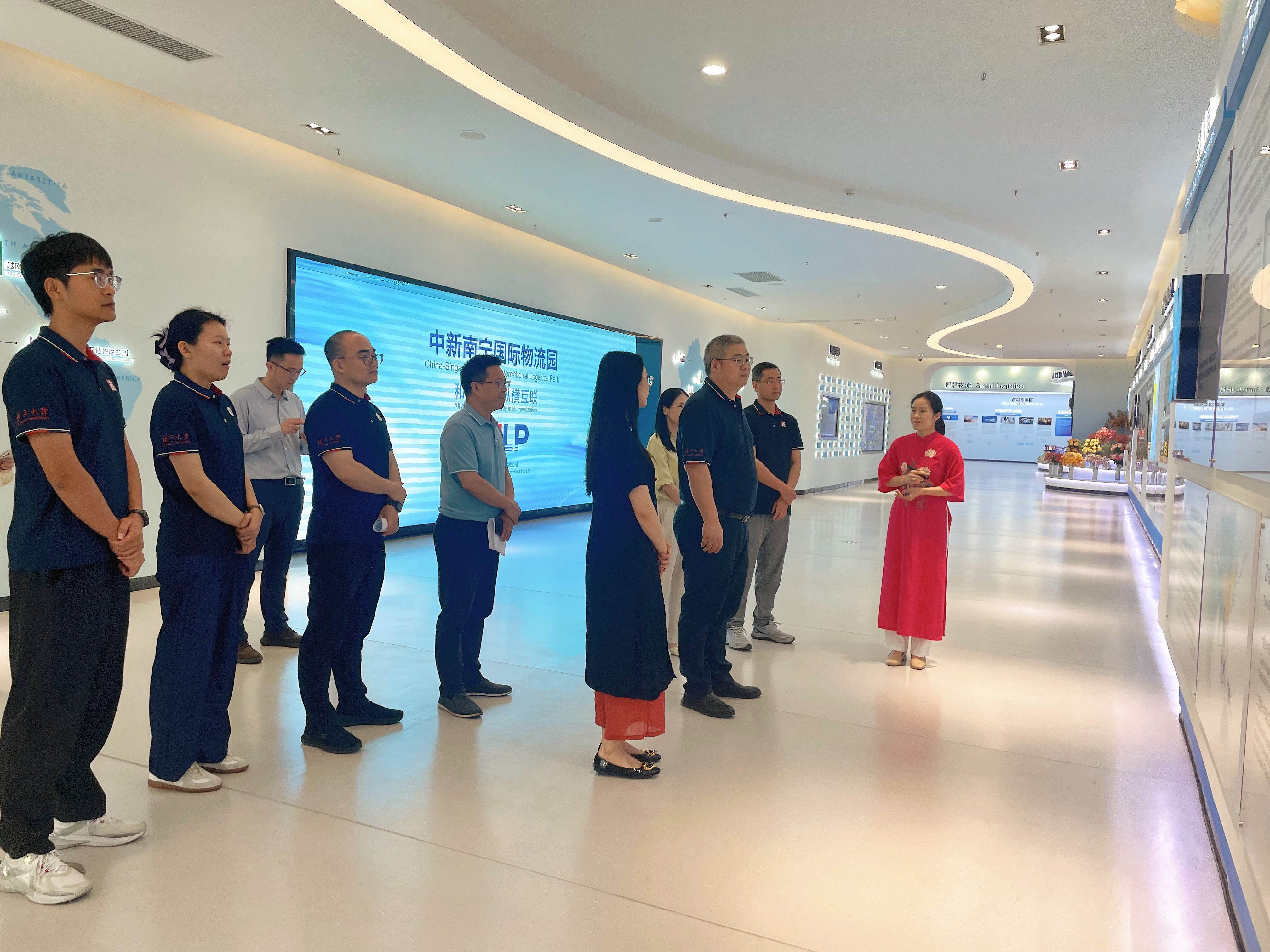 在中国—东盟特色商品汇聚中心副总经理李丹、活动策划部总经理刘金生等陪同下,调研组先后参观了中新南宁国际物流园展厅、汇聚中心新加坡馆、马来西亚、越南、印尼、泰国、缅甸等国家特色展馆及中国—东盟水果交易中心展厅,了解其在促进中国-东盟商贸互通中的枢纽作用。座谈会上,广西新中产业投资有限公司、中国—东盟特色商品汇聚中心董事长赵海燕提出企业人才需求及东盟商贸培训合作意向,双方就共建创新创业基地达成共识。朱帮助表示,公司将结合东盟区域经济特色,联合企业开发定制化课程,为跨境物流与商贸领域培养高素质复合型人才。