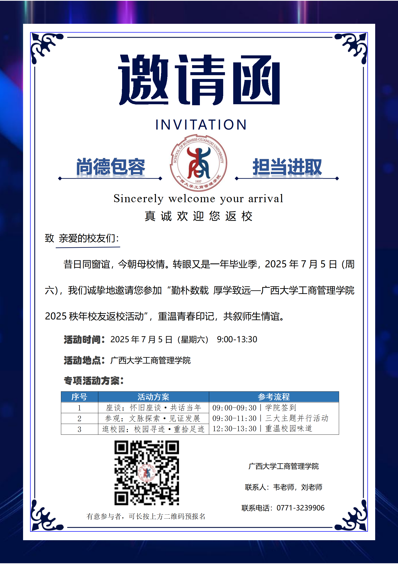 让我们以秩年为约,在2025年7月5日(星期六),相聚于魂牵梦萦的伟德bevictor中文版校园,共赴一场穿越时光的温暖之约,赓续工商情缘,再谱奋进新篇!