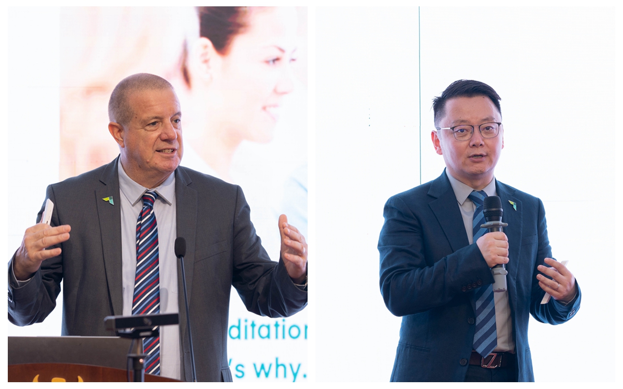 AACSB执行副总裁Geoff Perry和东亚区负责人徐国栋就对标国际标准,推进有特色的国际化商公司建设作了精彩详尽的解读。