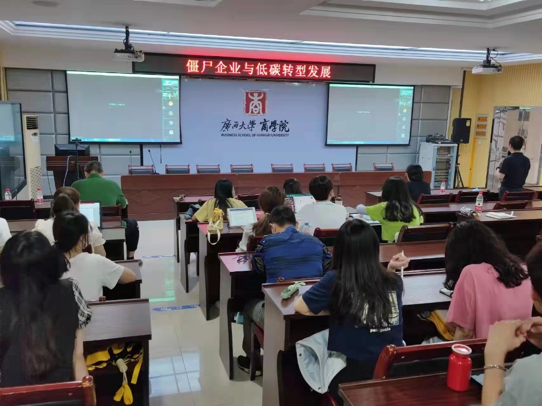 讲坛上,邵帅教授首先从我国“双碳”目标的提出引入话题,阐述了低碳转型目前发展的困境,从现实情况论述僵尸企业、产能过剩和低碳转型之间的关系。